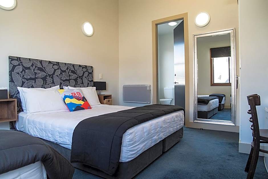 This smaller room features an private bathroom and a separate kitchen with an under bench refrigerator, dishwasher and a microwave. It also includes a 32-inch TV. This room has access to a small patio.